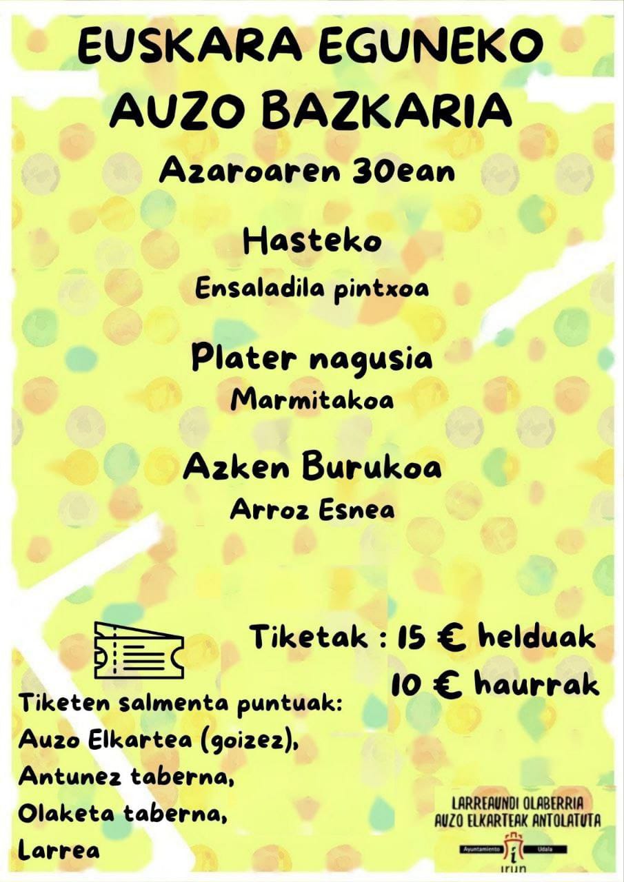 Larreaundi-Olaberriako Auzo Elkarteak egitarau zabala antolatu du Euskararen Nazioarteko Egunaren giran.